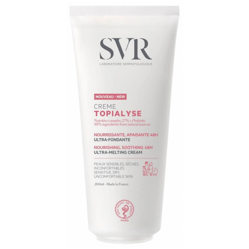 SVR Topialyse Crème Nourrissante Apaisante 48H 200 ml is a cream for sensitive, dry and uncomfortable skin. It's a nourishing treatment for the whole family, with a delicate fragrance and48-hour effectiveness.