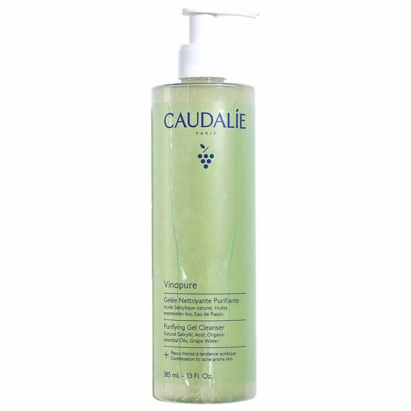 Caudalie Vinopure Gelée Nettoyante Purifiante Bio 385 ml is a purifying cleansing gel for combination to acne-prone skin, withnatural salicylic acid, organic essential oils and grape water to cleanse and tighten pores.