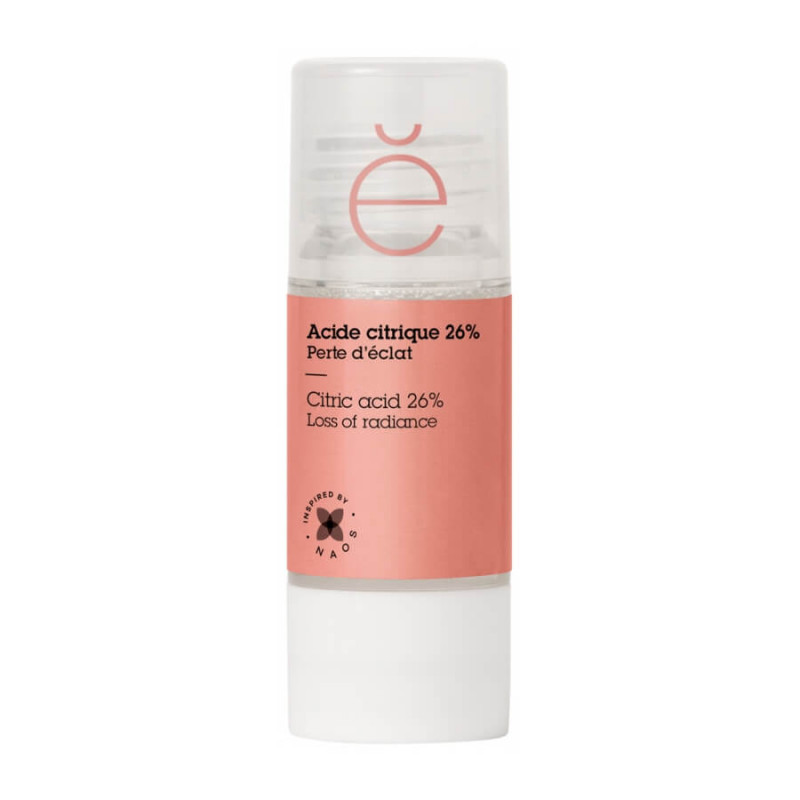 Etat Pur Acide Citrique 26% 15 ml is a skin care product that contains one of the highest concentrations of citric acid (AHA fruit acid from the lemon) to tighten enlarged pores, exfoliate the skin and make it more radiant in a few days.