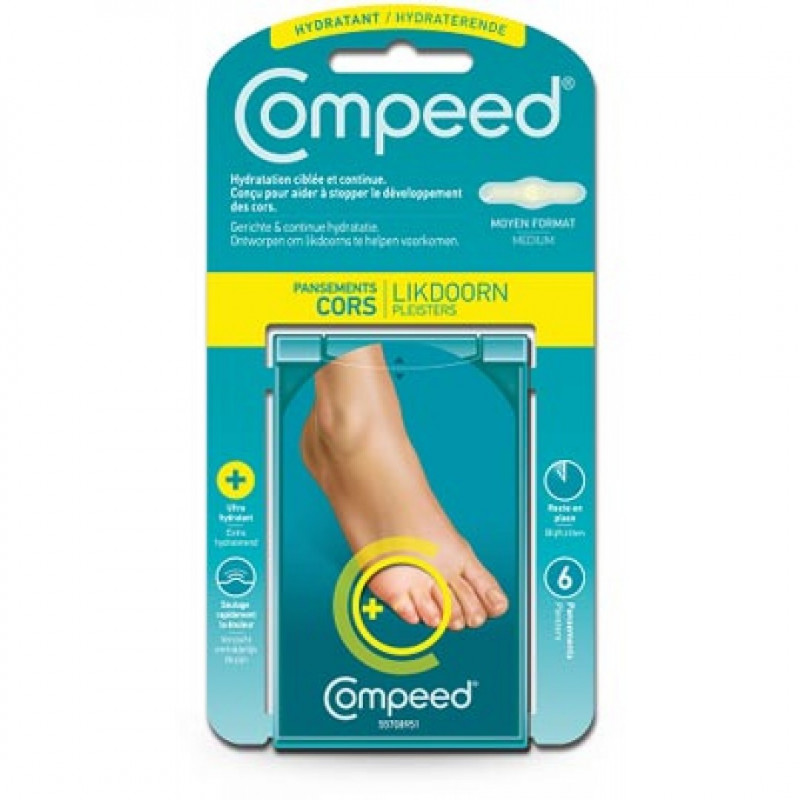 Appliquez le pansement sur une peau propre et sèche. Assurez-vous que la peau soit exempte de crème ou d'huile. Enlevez le papier protecteur en évitant de toucher la partie adhésive. Appliquez fermement le pansement sur le cor en vous assurant que les bords soient bien aplatis. Laissez le pansement en place jusqu'à ce qu'il se décolle de lui-même. Il peut rester en place plusieurs jours.